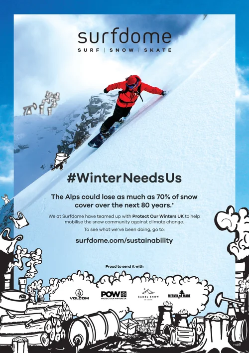 Why: The past decade has been the warmest on record and it’s having an adverse effect on our winters. Our favourite sports are at risk as our playground continues to suffer and we at Surfdome don’t want to just sit back and watch it happen. Evidence: We went off grid for our revolutionary winter campaign with POW ambassadors Ed Leigh and James Stentiford, heading into the mountains in Verbier, Switzerland to see for ourselves the very real risk posed by increasing global temperatures. Solution: Surfdome as an E-commerce store has highlighted the areas of impact we have on the environment, and we're making real change. From partnerships with charities such as Protect Our Winters UK to the brands we choose to sell (such as Volcom with their innovative REPREVE range) to our sustainable processes as a business – we understand that it’s time to act now.
