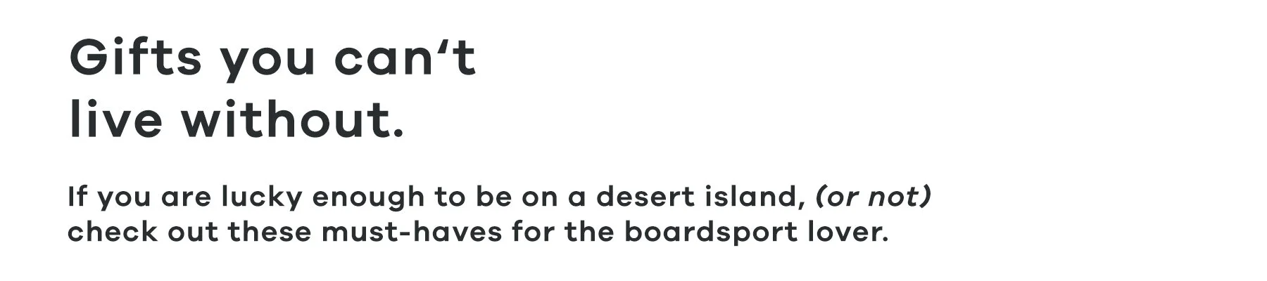 Desert Island Gifts - The must-have gifts for the board sport lover. The animated creative, shot in a studio and post produced in-house utilises plastic free wrapping with fun and subtle nods towards Christmas, Travel and Gifting. Delivered across online, CRM and paid advertising. The creative was evergreen and was used for 2017, 2018 & 2019.